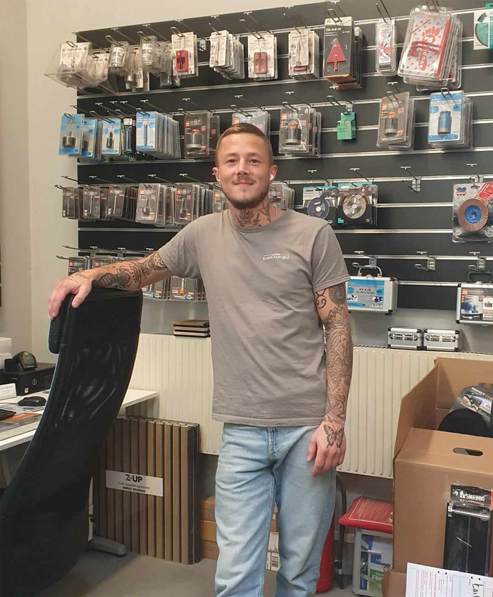 – Jag har alltid tyckt om att bygga saker, så när det blev dags att välja gymnasielinje blev det murare-och plattsättarlinjen i Karlskrona, säger Pontus som nu har arbetat med att sätta plattor i över femton år.