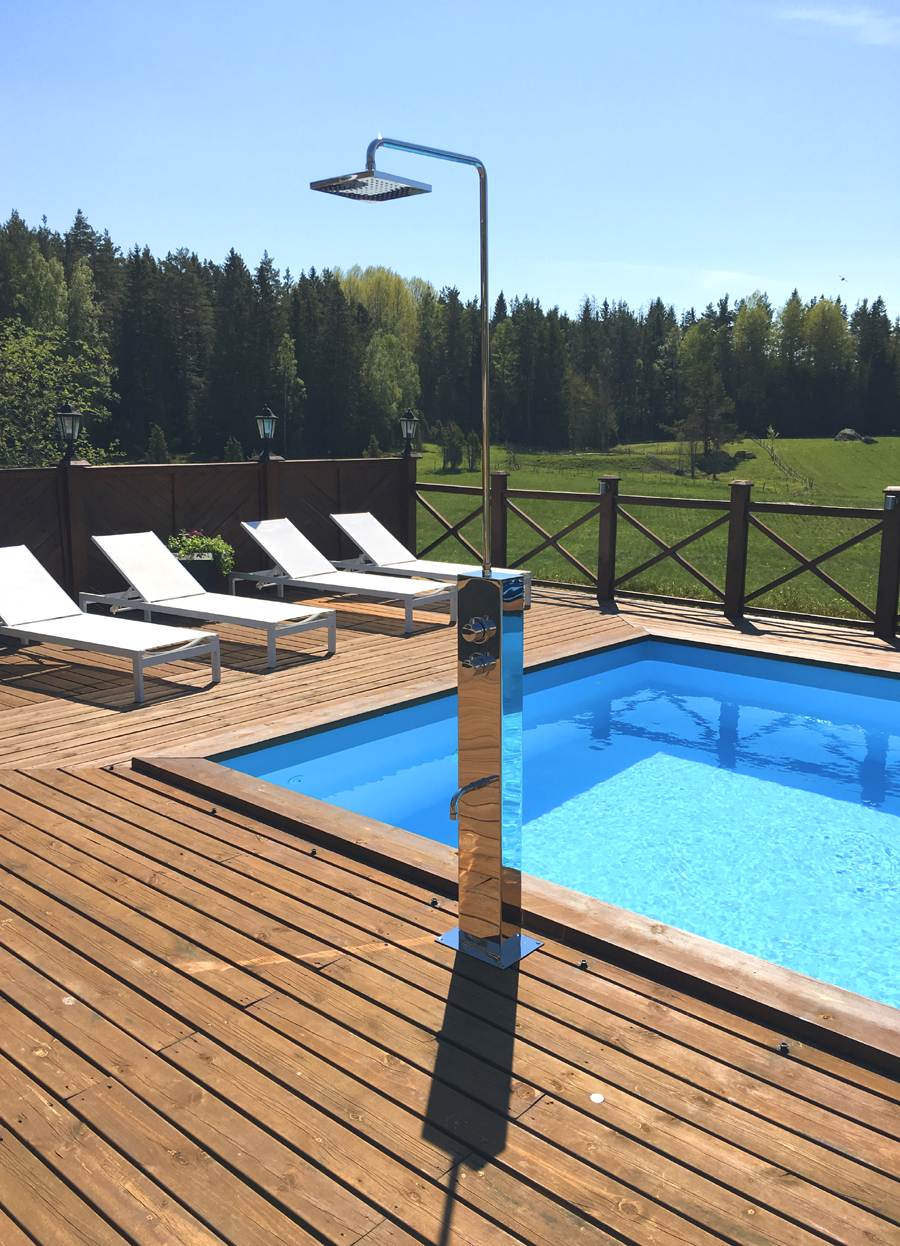 Golvpoolen – Utemiljö – Spabad, utomhusduschar och utomhusklinker