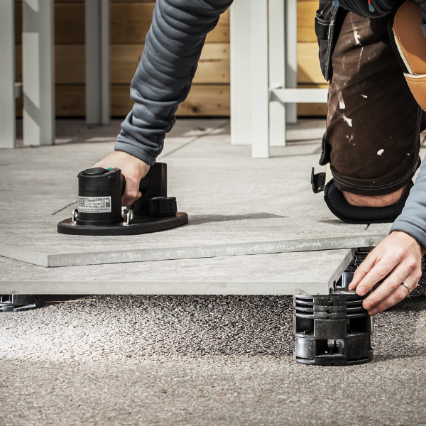Grabos plattlyftar är optimala vid hantering av otympliga storformatsplattor eller tjocka och tunga utomhusplattor.